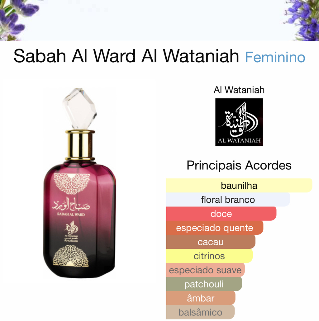 Seja em eventos especiais, encontros românticos ou no seu dia a dia, Sabah Al Ward Al Wataniah é a escolha certa para quem busca um perfume que combine delicadeza e força.